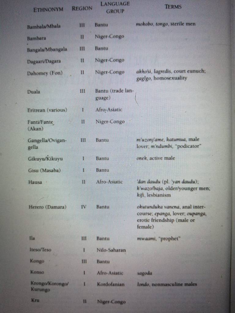 “This was not unique to Egypt or this time period. In the 16th century, the Imbangala people of Angola had ‘men in womens apparel, with whom they kept amongst their wives’… The Igbo and Yoruba tribes, found mostly in present day Nigeria, did not have a binary of genders and typically did not assign gender to babies at birth, and instead waited until later life. Similarly the Dagaaba people (present day Ghana) assigned gender not based on ones anatomy, but rather the energy one presents. ” African sexuality and the legacy of imported homophobia (stonewall.org.uk)