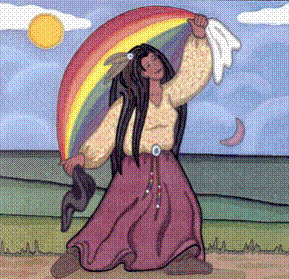 “The rainbow is a sign from Him who is in all things,” said the old, wise one. “It is a sign of the union of all peoples like one big family. Go to the mountaintop, child of my flesh, and learn to be a Warrior of the Rainbow, for it is only by spreading love and joy to others that hate in this world can be changed to understanding and kindness, and war and destruction shall end!”