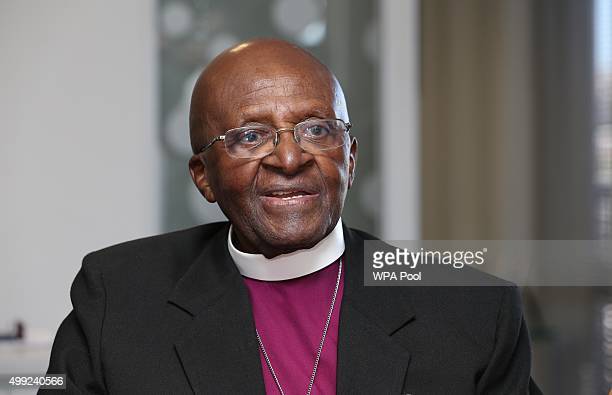 CAPE TOWN, SOUTH AFRICA – NOVEMBER 30: The Archbishop Emeritus Desmond Tutu at the offices of The Desmond & Leah Tutu Legacy Foundation during a visit with Prince Harry on the first day of his visit to South Africa on November 30, 2015 in Cape Town, South Africa. (Chris Radburn – WPA Pool /Getty Images)