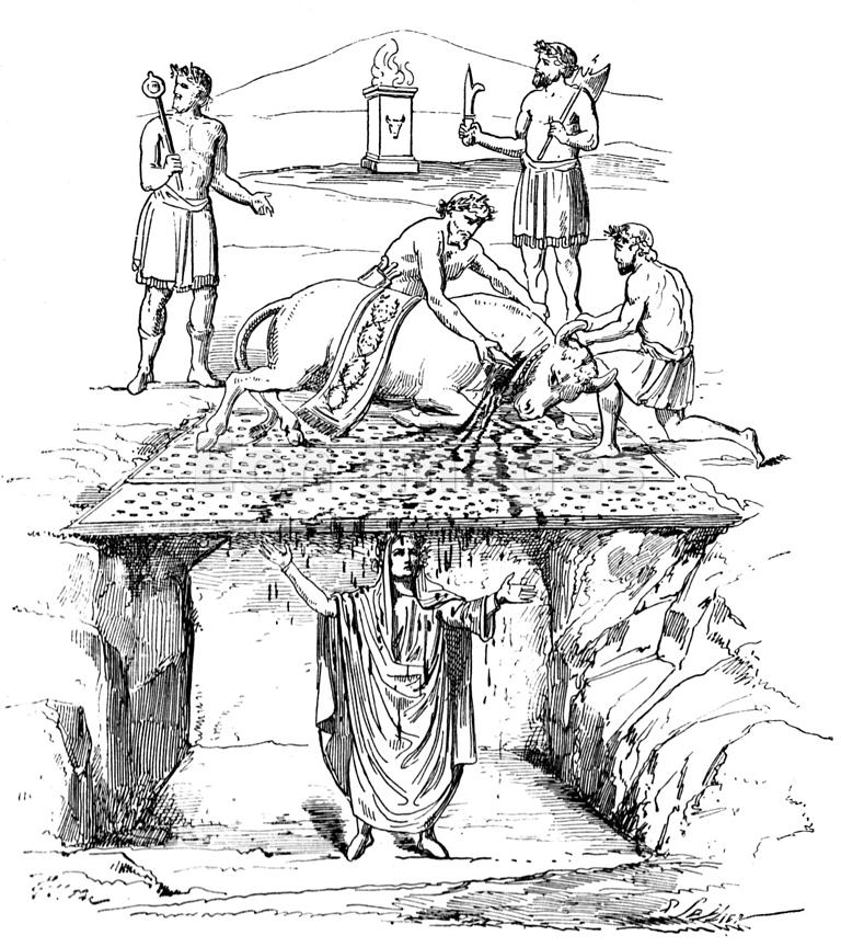 Previous Image Next Image Roman ceremony Taurobolium The taurobolium (Roman ceremony involving blood of a sacrificial bull.)