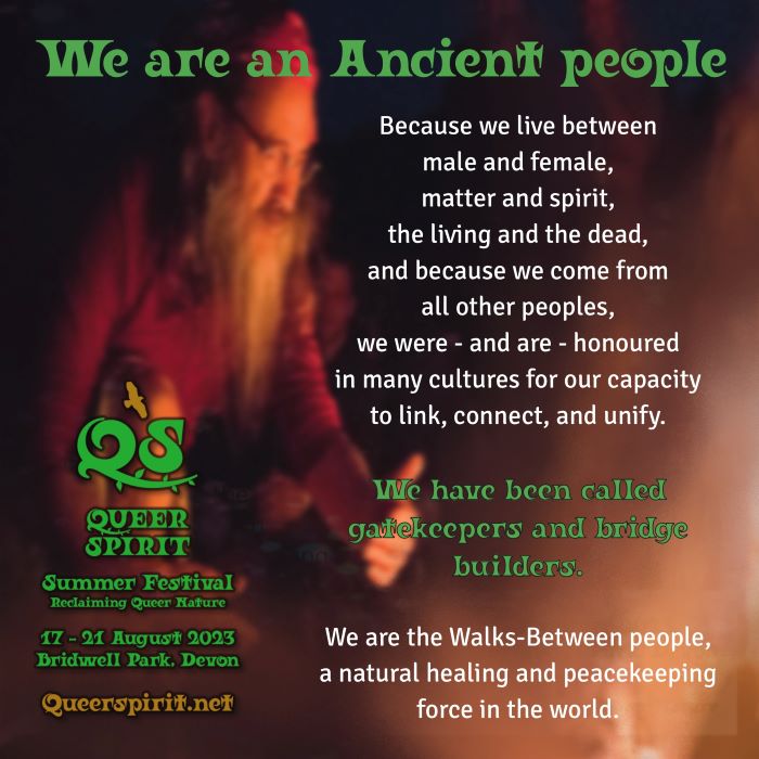 When I write and speak about the commonalities between the spiritual roles often taken by same-sex loving and gender-fluid people in traditional cultures around the world and also in pre-Christian Europe I tend to feel like I am delivering ‘news’, releasing a perspective little known in the world. However it is no new discovery IContinue reading “The Queer Spiritual Inheritance”